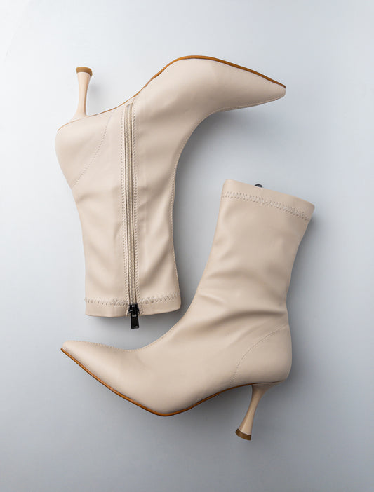 Bej İnce Topuk Streç Bot – 8 cm Topuk
