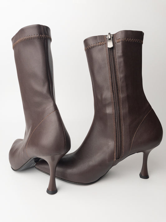 Acı Kahve İnce Topuk Streç Bot – 8 cm Topuk