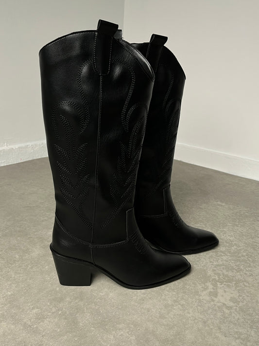 Siyah Western Topuklu Deri Çizme