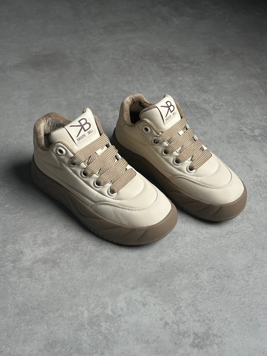 Bej Kürklü Kalın Taban Sneaker