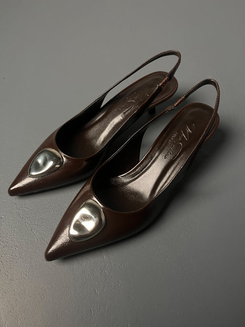 Acı Kahve Kırışık Rugan Metal Detaylı İnce Topuklu Ayakkabı -