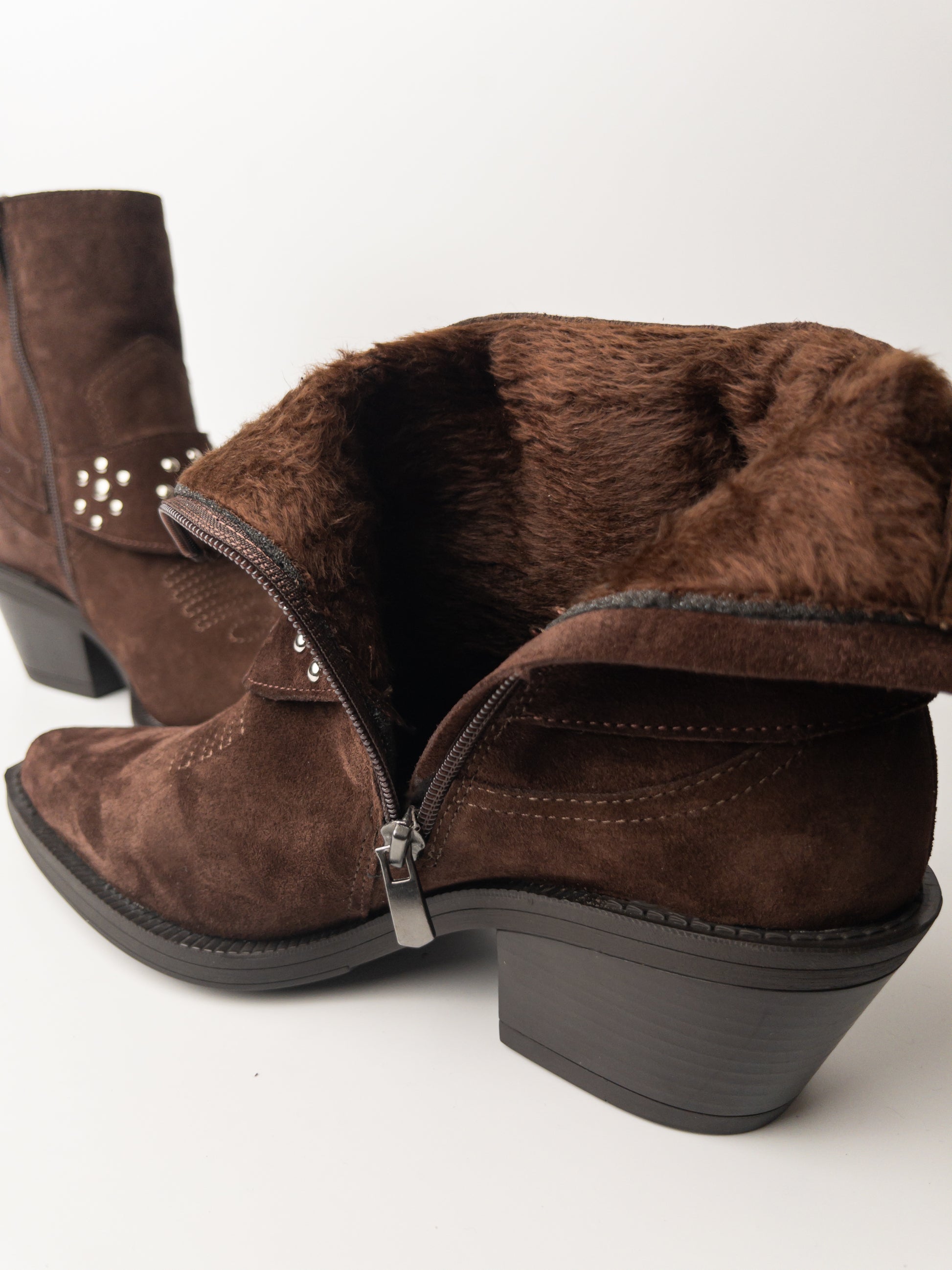 Acı Kahve Kürklü Hakiki Deri Western Bot – Stud Detaylı