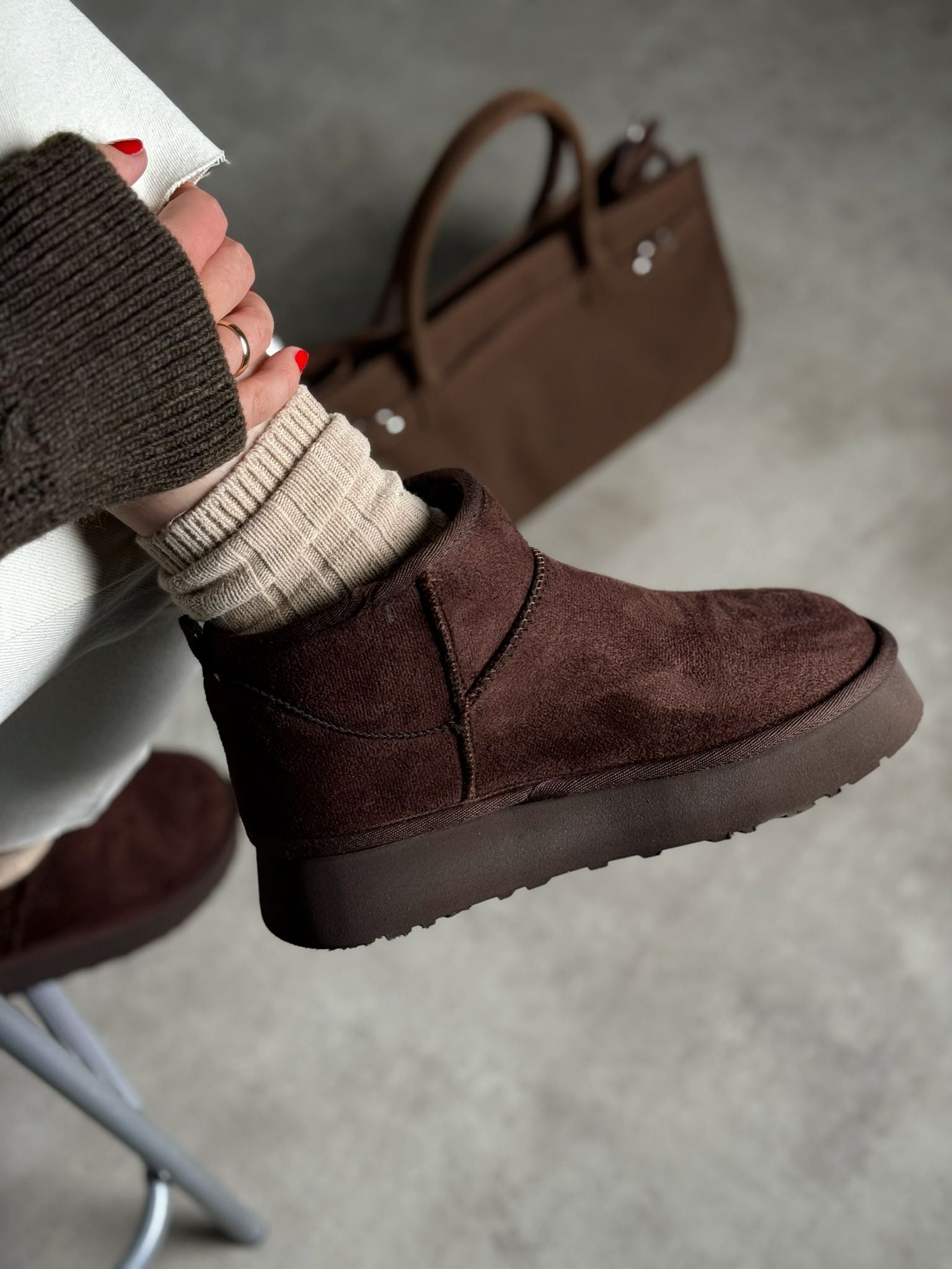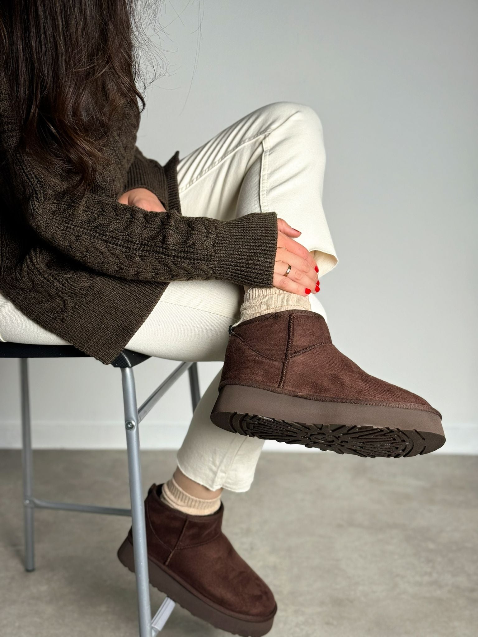 Sade şıklığın en sıcak hali. Acı kahve tonundaki bu kürklü kısa bot, hem konfor hem stil arayanlar için özel olarak tasarlandı. İç kısmındaki tam kürklü astar sayesinde ayaklarınızı sıcacık tutarken, süet dokusuyla her kombine zarif bir dokunuş katar. Günlük şehir temposunda, hafta sonu rahat kombinlerde ya da kışlık tatillerde ideal bir tamamlayıcı.