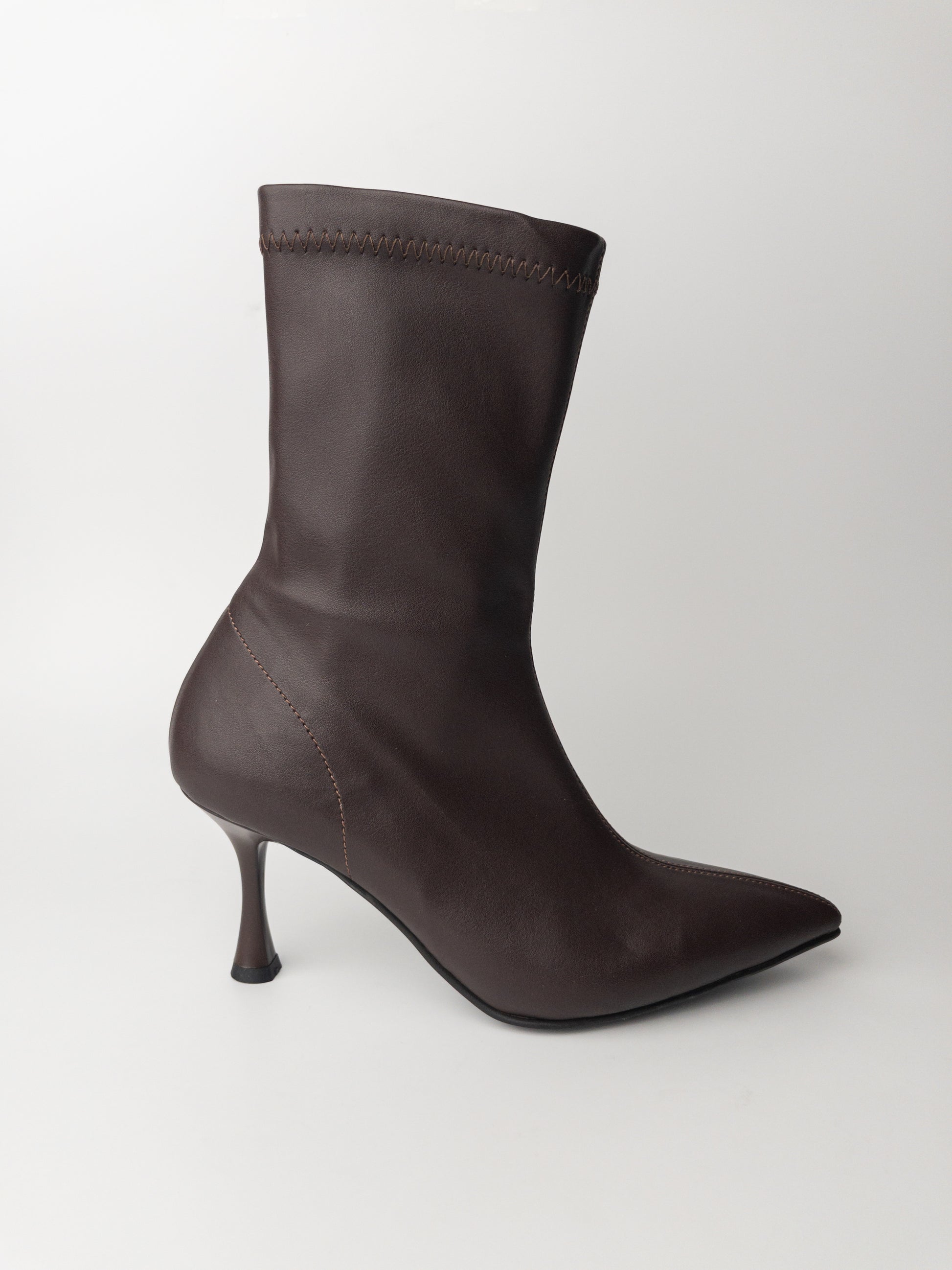 Acı Kahve İnce Topuk Streç Bot – 8 cm Topuk