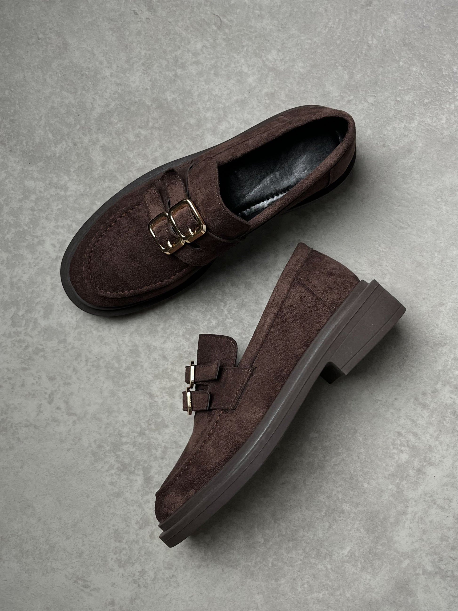 Zamansız şıklığı yumuşacık süet dokusuyla buluşturan bu loafer, gold toka detayıyla sade ama dikkat çekici bir stil sunuyor. 4 cm topuğu ve tam kalıp yapısı sayesinde hem zarif hem konforlu bir kullanım sağlar. Günlük kombinlerden ofis şıklığına kadar her stile uyumlu.