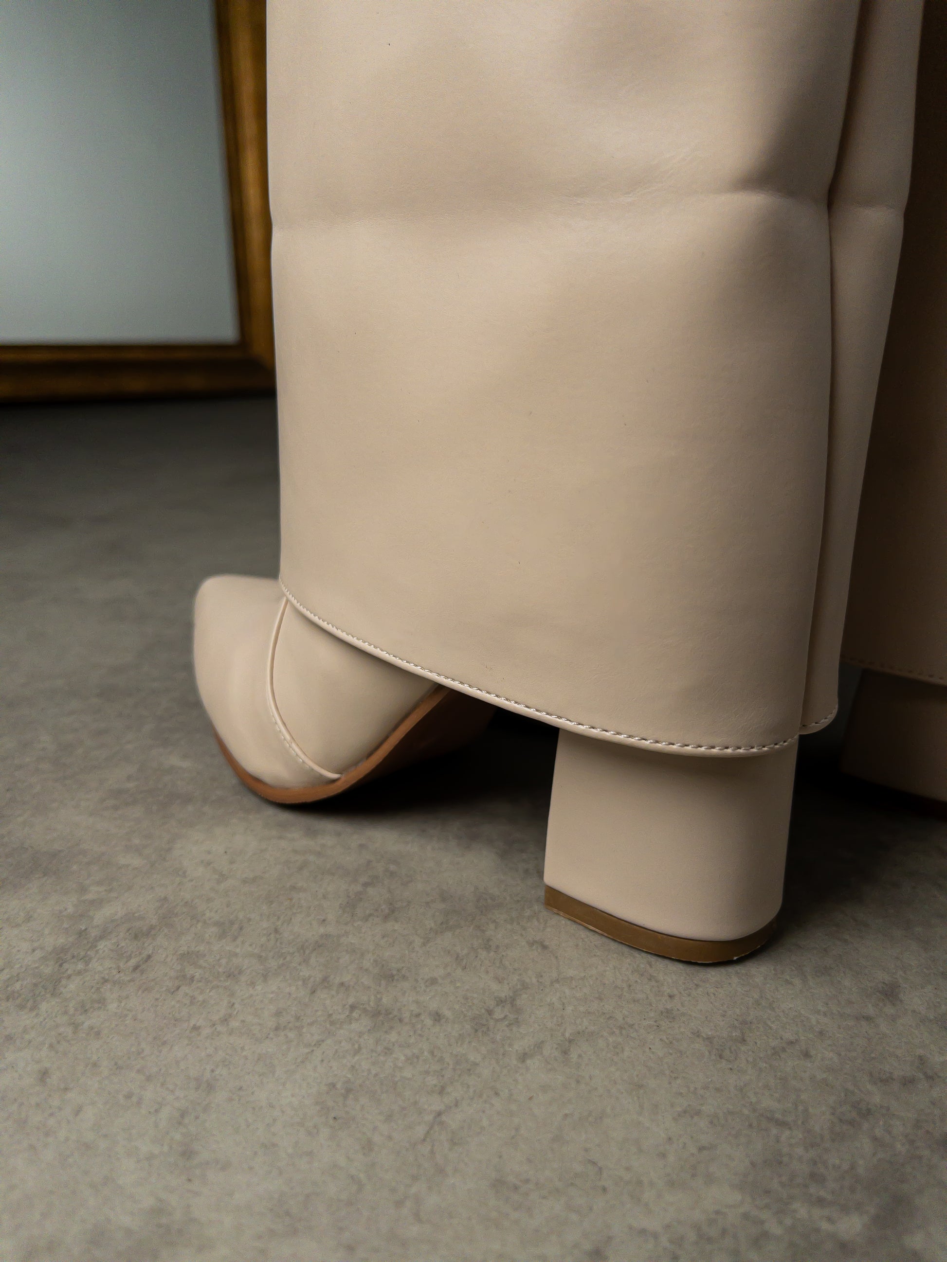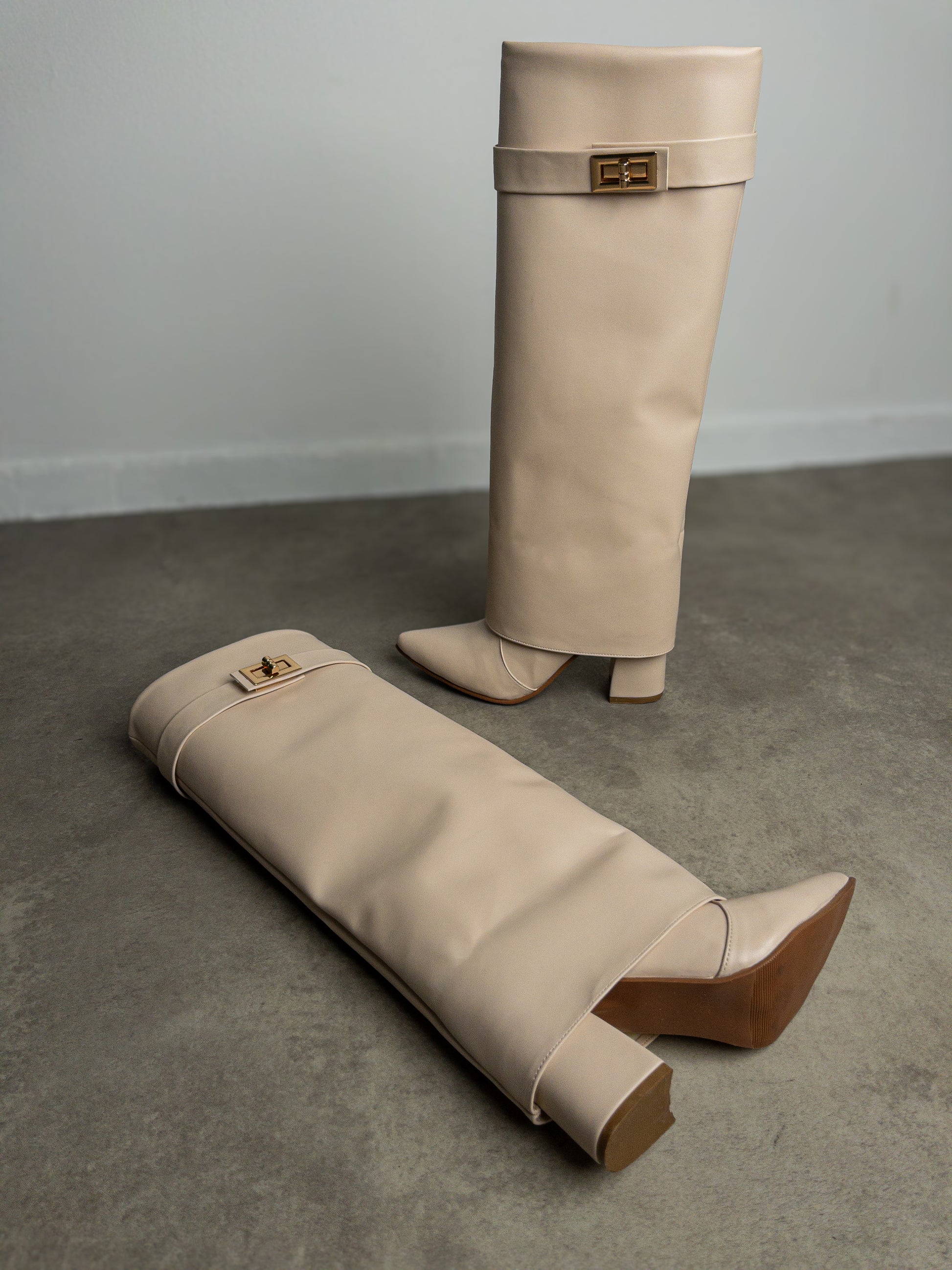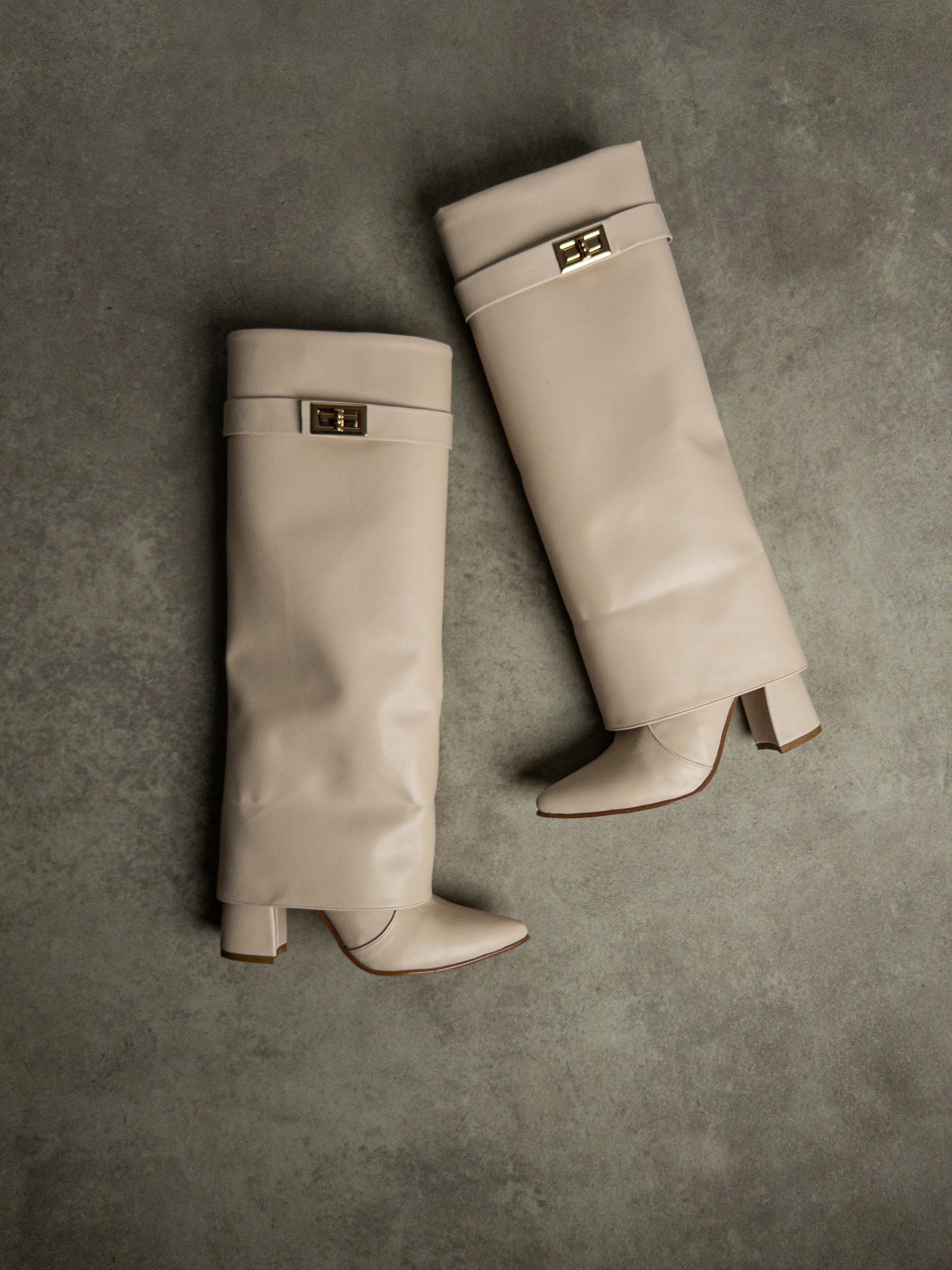 Bej Soft Touch Gold Tokalı Çizme | 8 cm Topuk