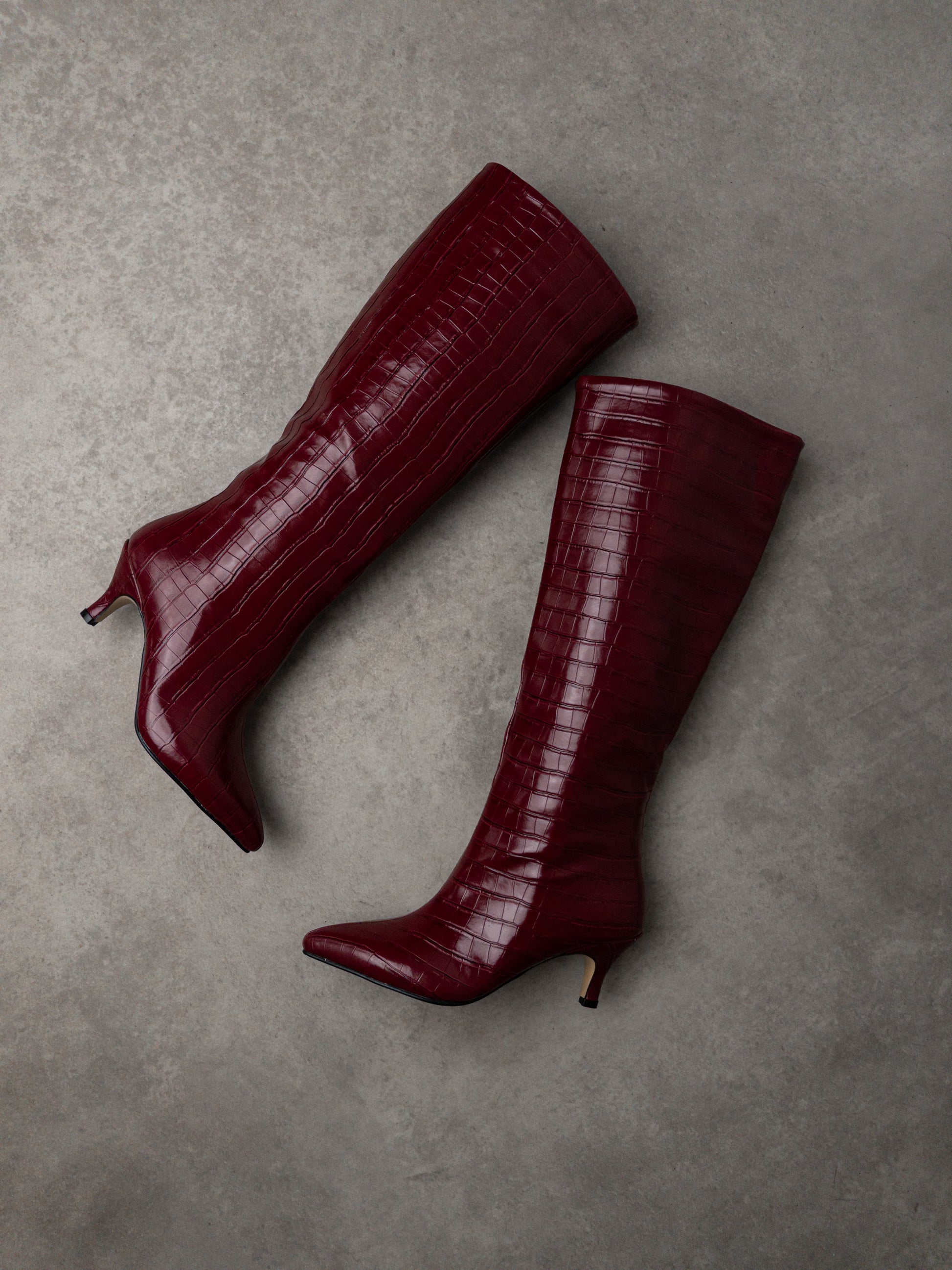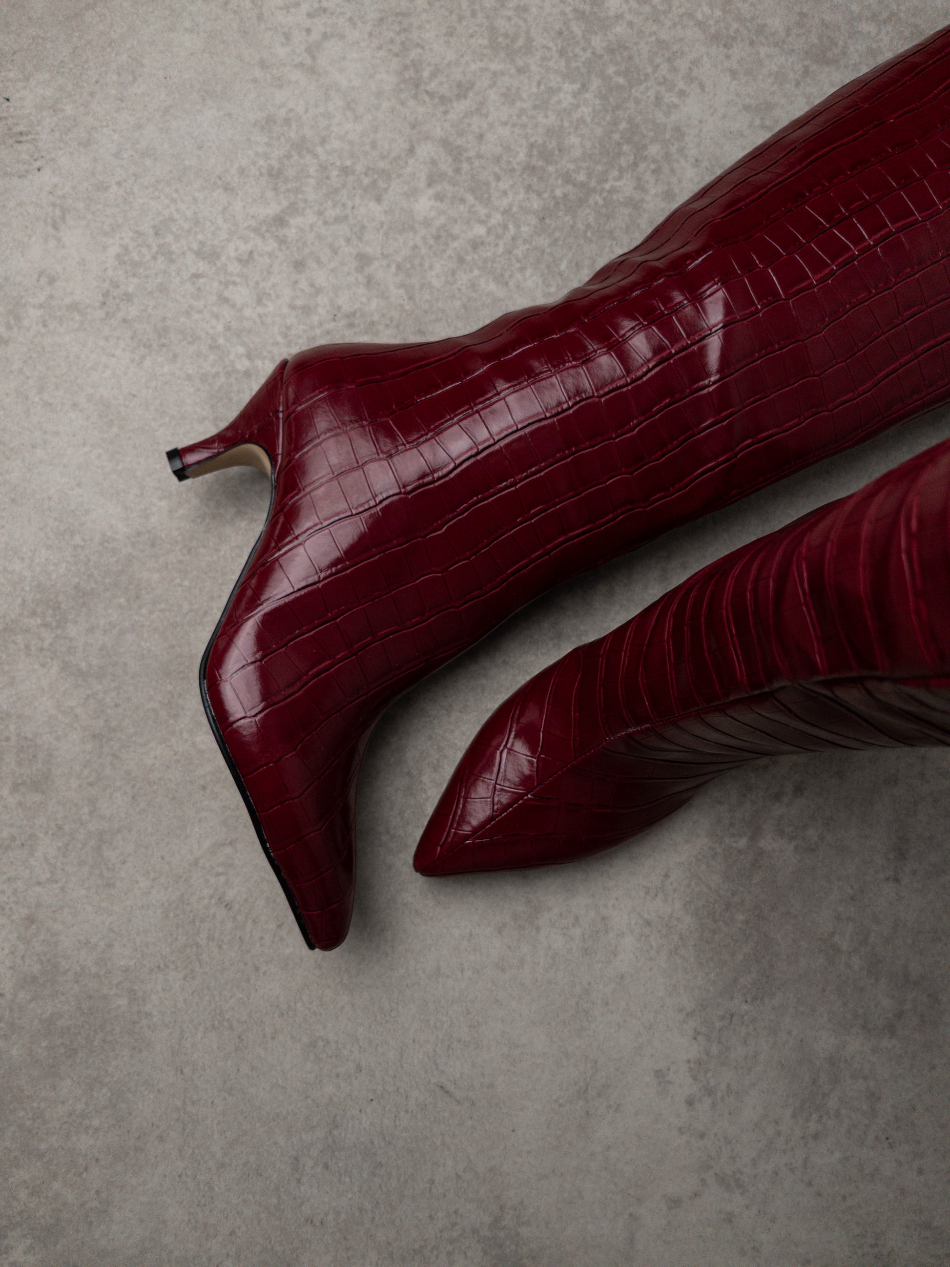 Bordo Krokodil Desenli Çizme