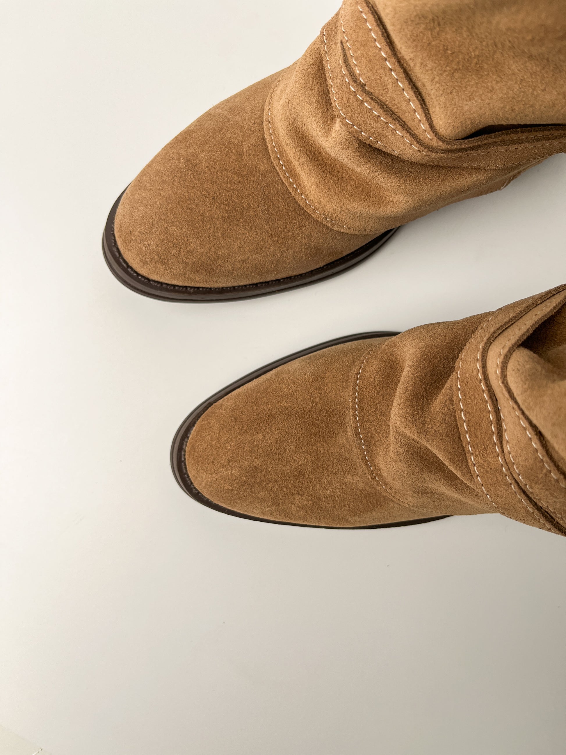 Camel Süet Tokalı Hakiki Deri Mini Bot – 7 cm Topuk