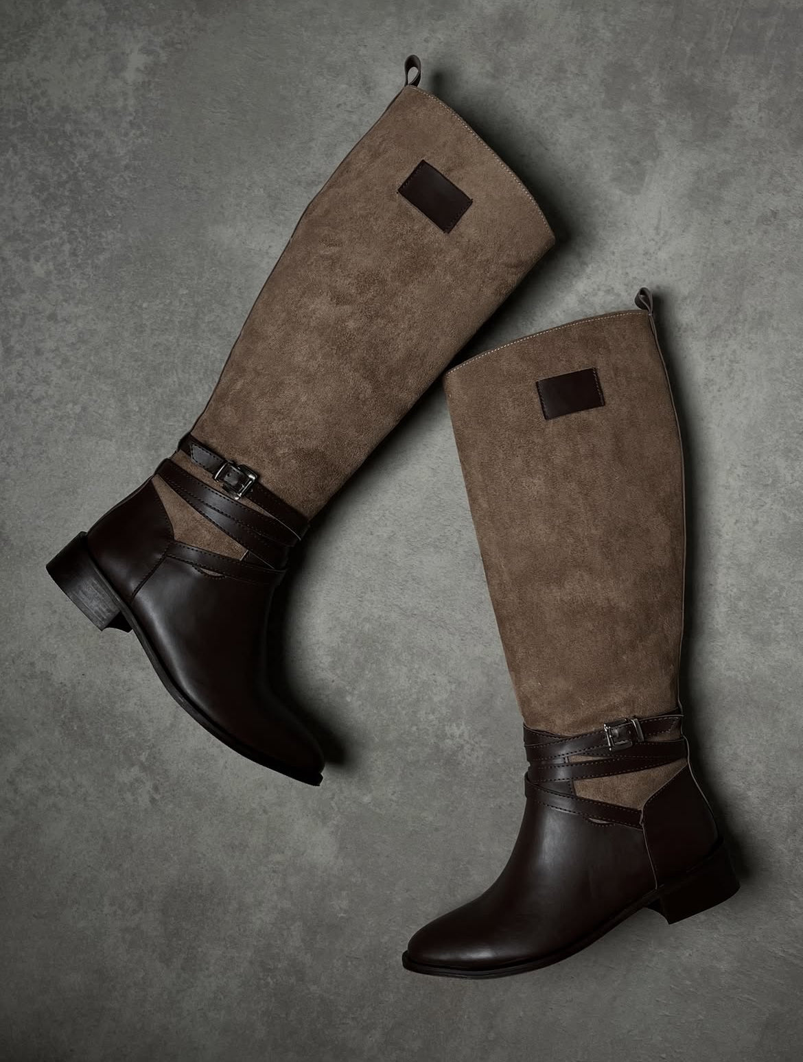 Kahverengi Binici Çizme – Süet & Deri Dokulu Kombin Model