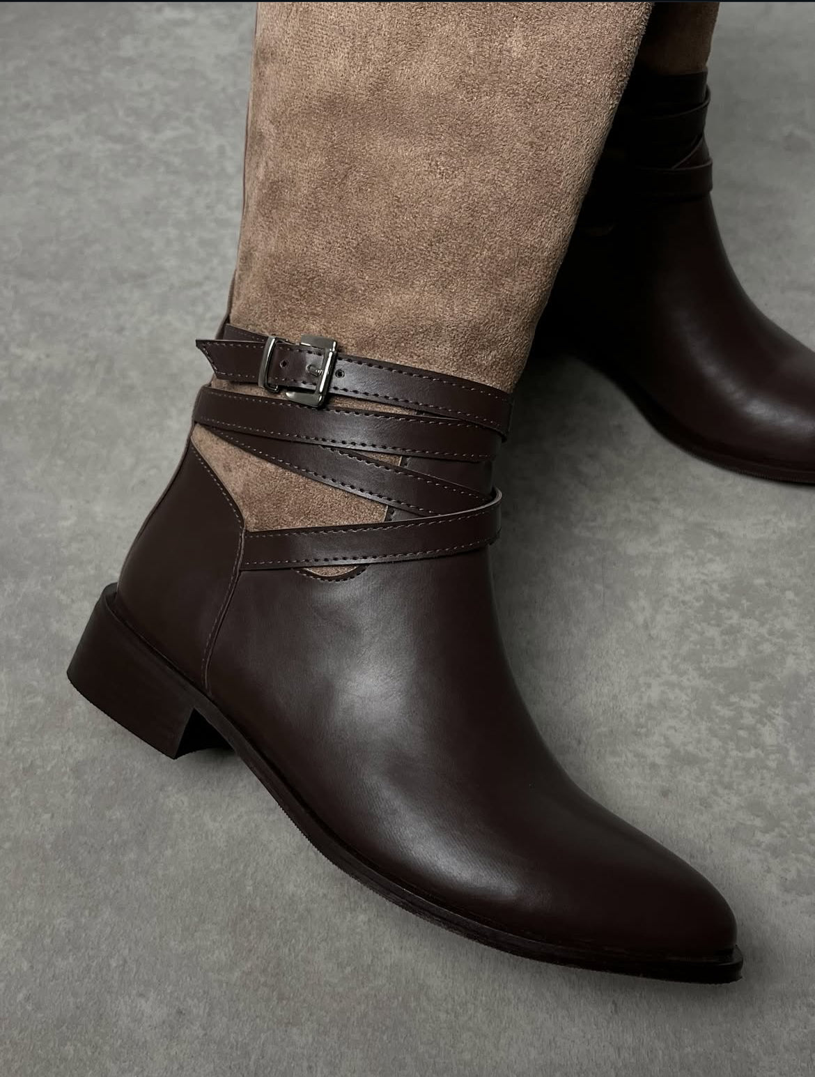 - Detay: Çapraz kayış tokalı, binici tipi uzun çizme