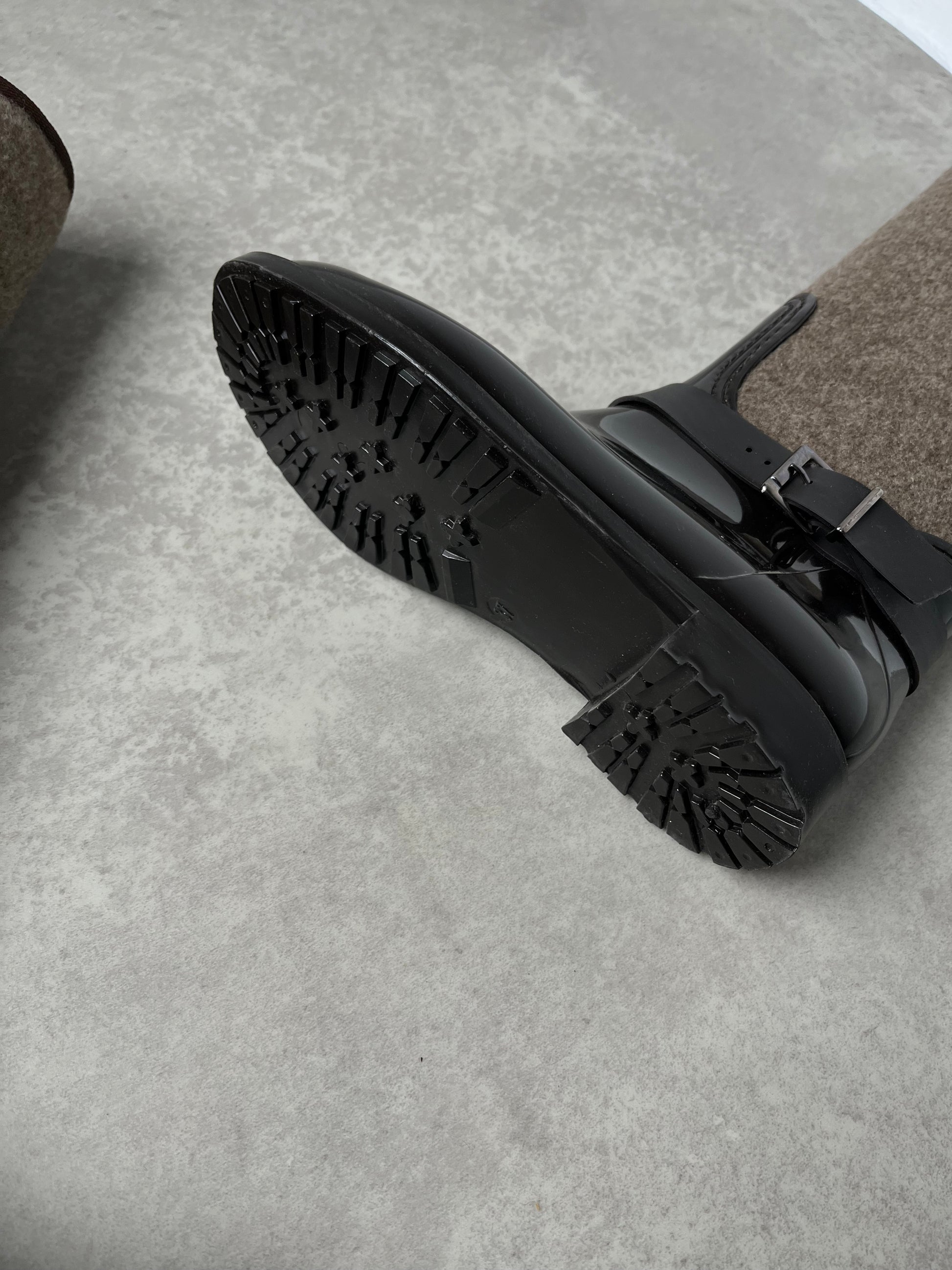 Yağmurlu günleri şıklıkla karşılayan zamansız bir parça. Parlak kahverengi tabanı ve tokalı detayı modern bir görünüm sunarken, yumuşak keçe kumaşlı üst kısmı sıcak tutar ve konfor sağlar. Kaymaz dişli tabanı sayesinde ıslak zeminlerde güvenli adımlar atmanızı sağlar. Şehir stiline zarafet katan sade ama etkileyici bir model.