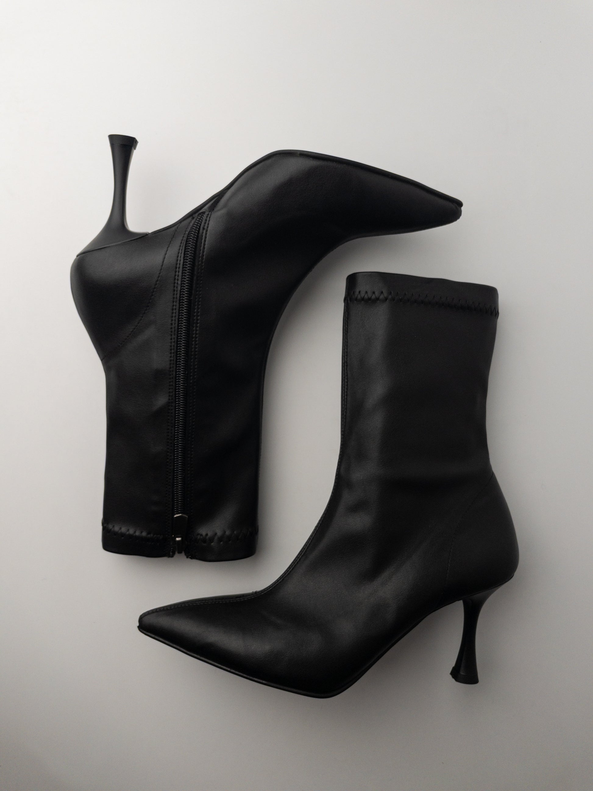 Siyah İnce Topuk Streç Bot – 8 cm Topuk