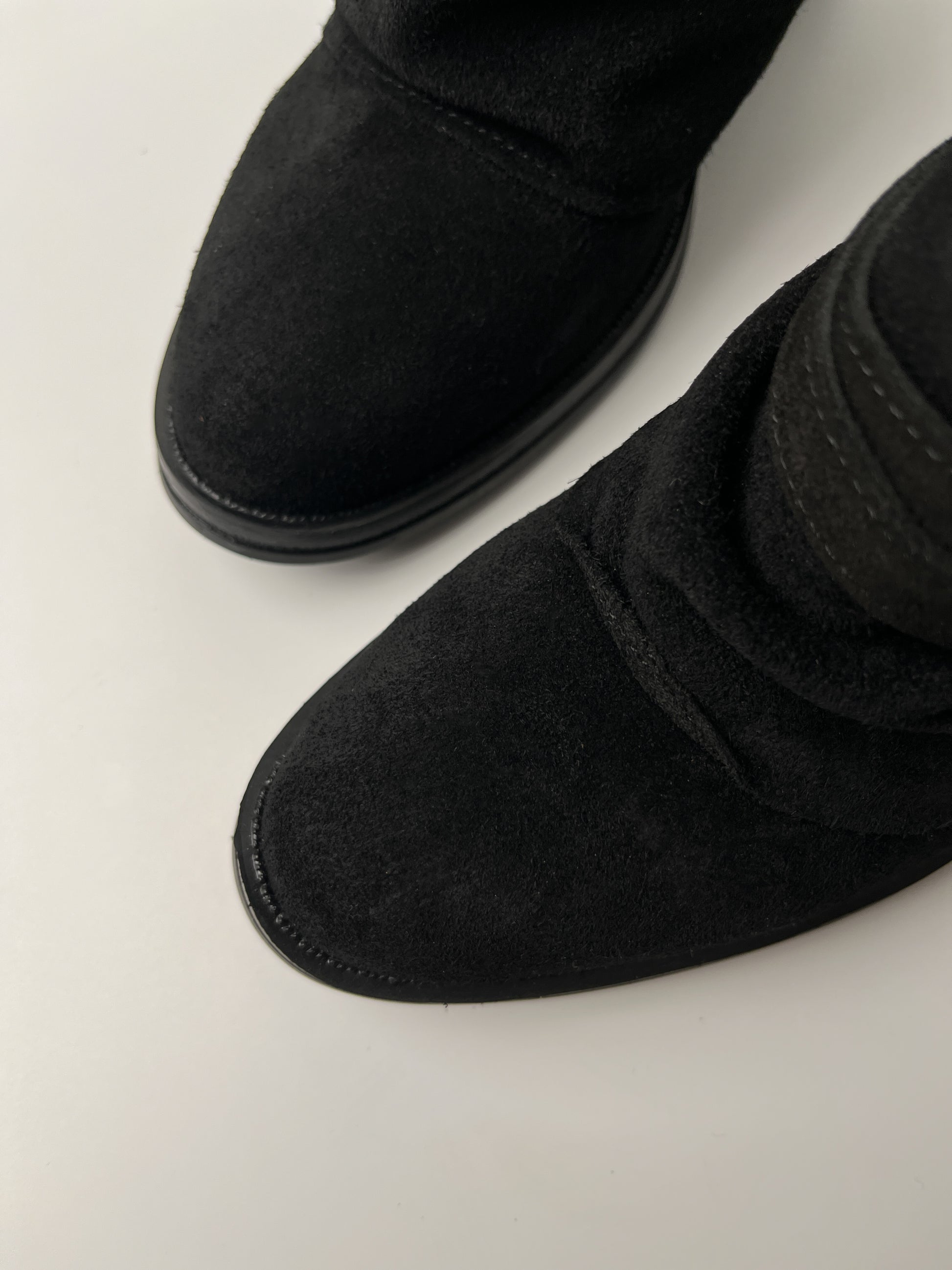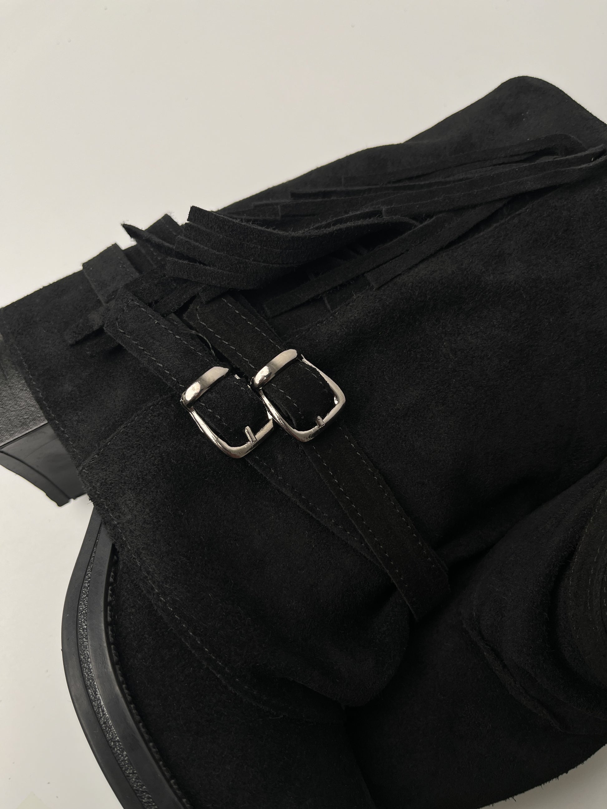 Siyah Süet Tokalı Hakiki Deri Mini Bot – 7 cm Topuk