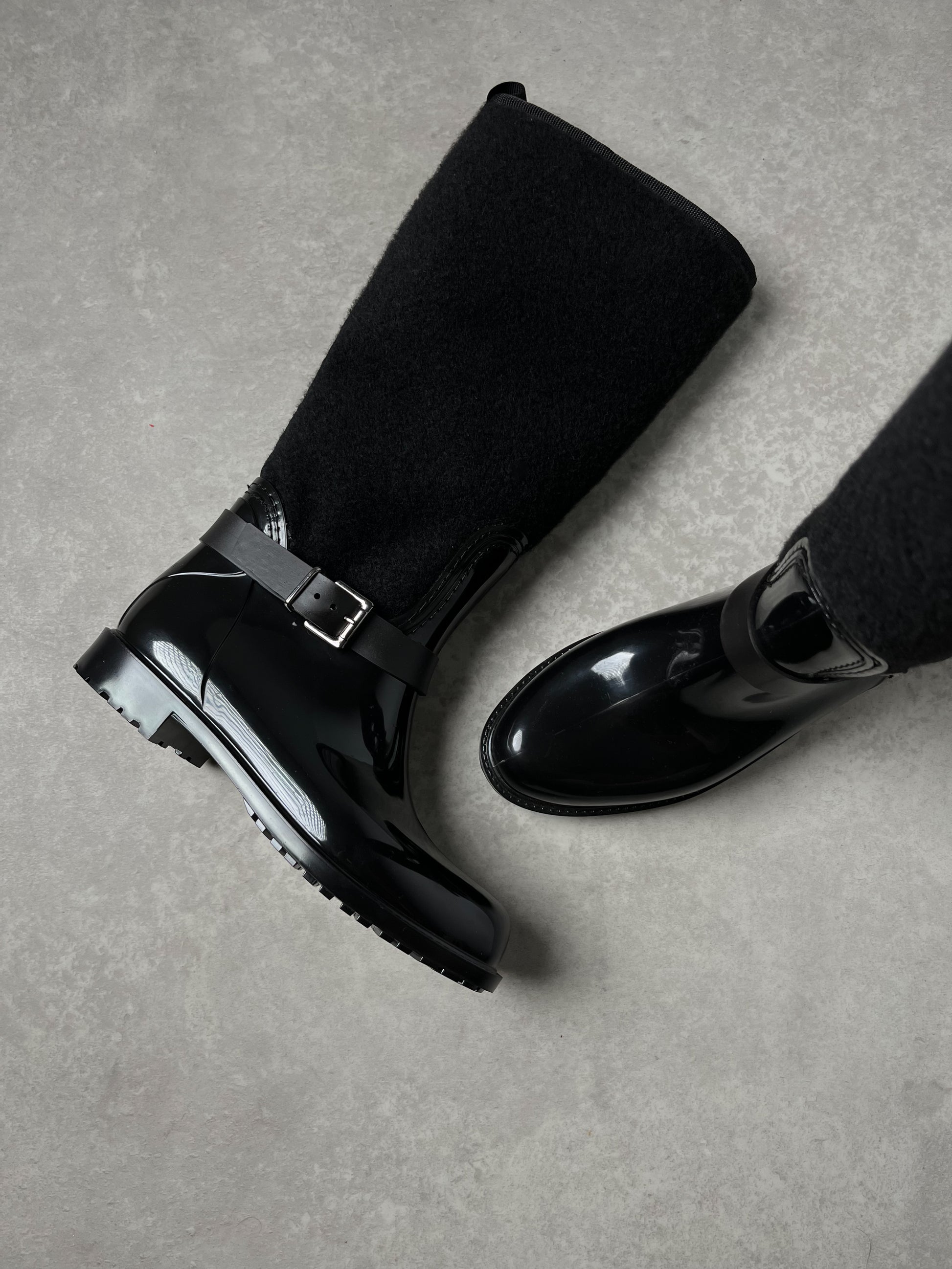 Siyah Tokalı Detaylı Yağmur Çizmesi